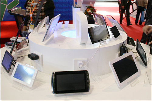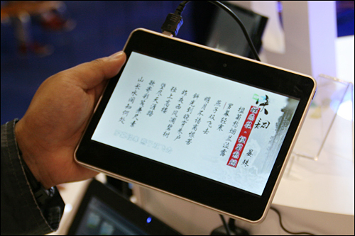 接下来出场的选手可谓重量级,媲美上网本的10.1英寸高清屏幕设计,却实现了10毫米超薄设计,搭配Android 2.1系统,更显智能平板大魅力。