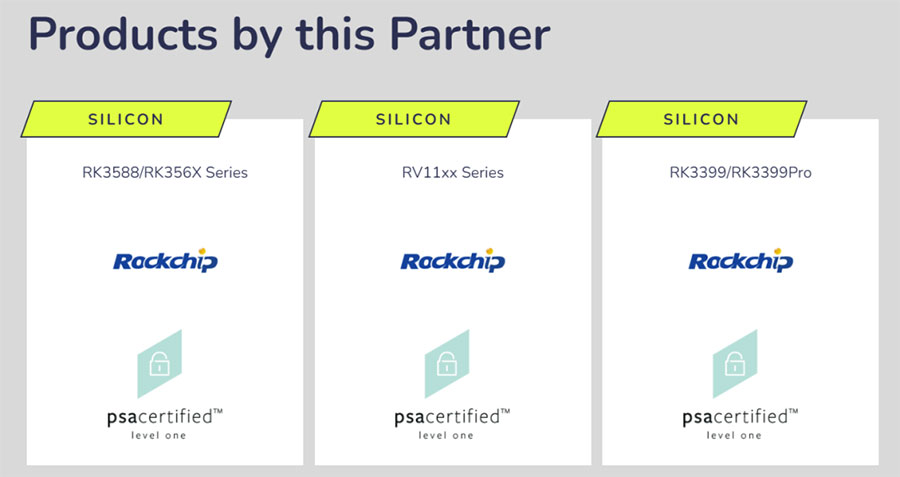 RK3588及RK356X系列均具有强大的安全子系统,支持Arm TrustZone®隔离、加密硬件加速器、安全OTP、安全启动等功能,满足 PSA 模型的10个安全目标,可高效支持基于PSA框架的安全物联网解决方案的大规模部署。