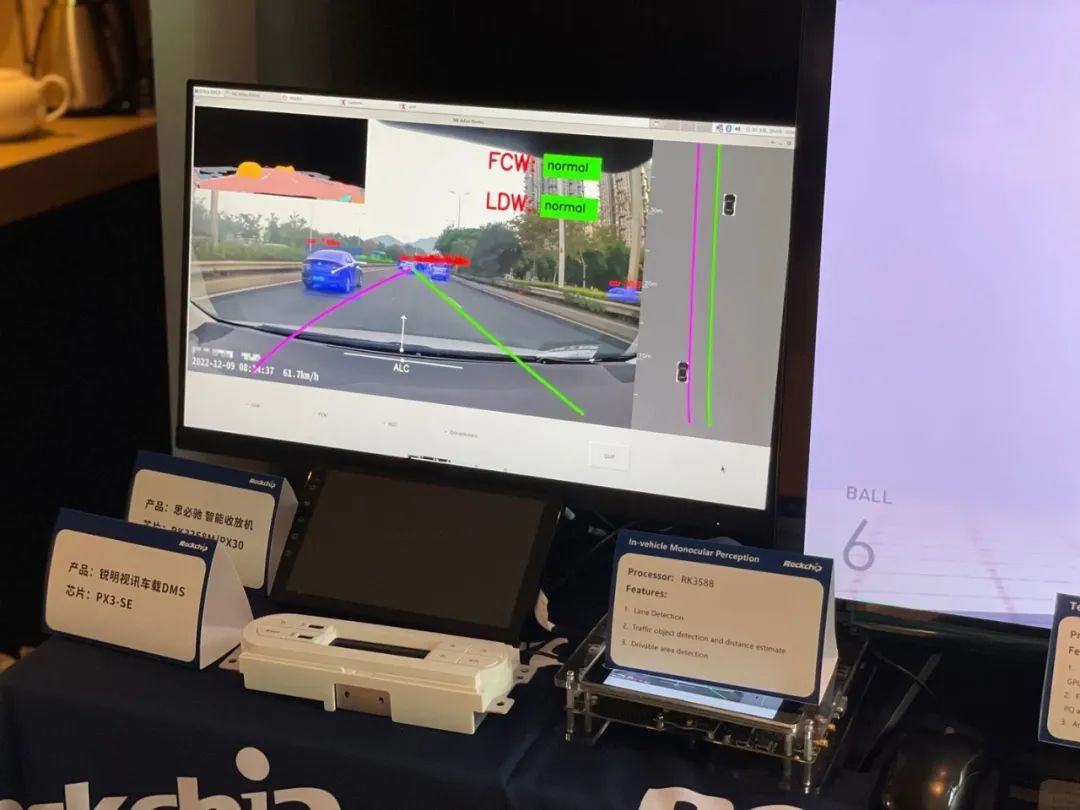 汽车电子展区,展出各类搭载精彩体育电竞赛事尽在MK ESPORTS微方案的车载产品,涵盖乘用车方案、商用车方案及智能座舱方案,现场演示了搭载RK3588芯ADAS汽车视觉算法,可识别汽车在驻车行进中的车距路距及物体识别,以实现避障及360度环视功能,还展示了搭载RK3358M的中控屏等应用。