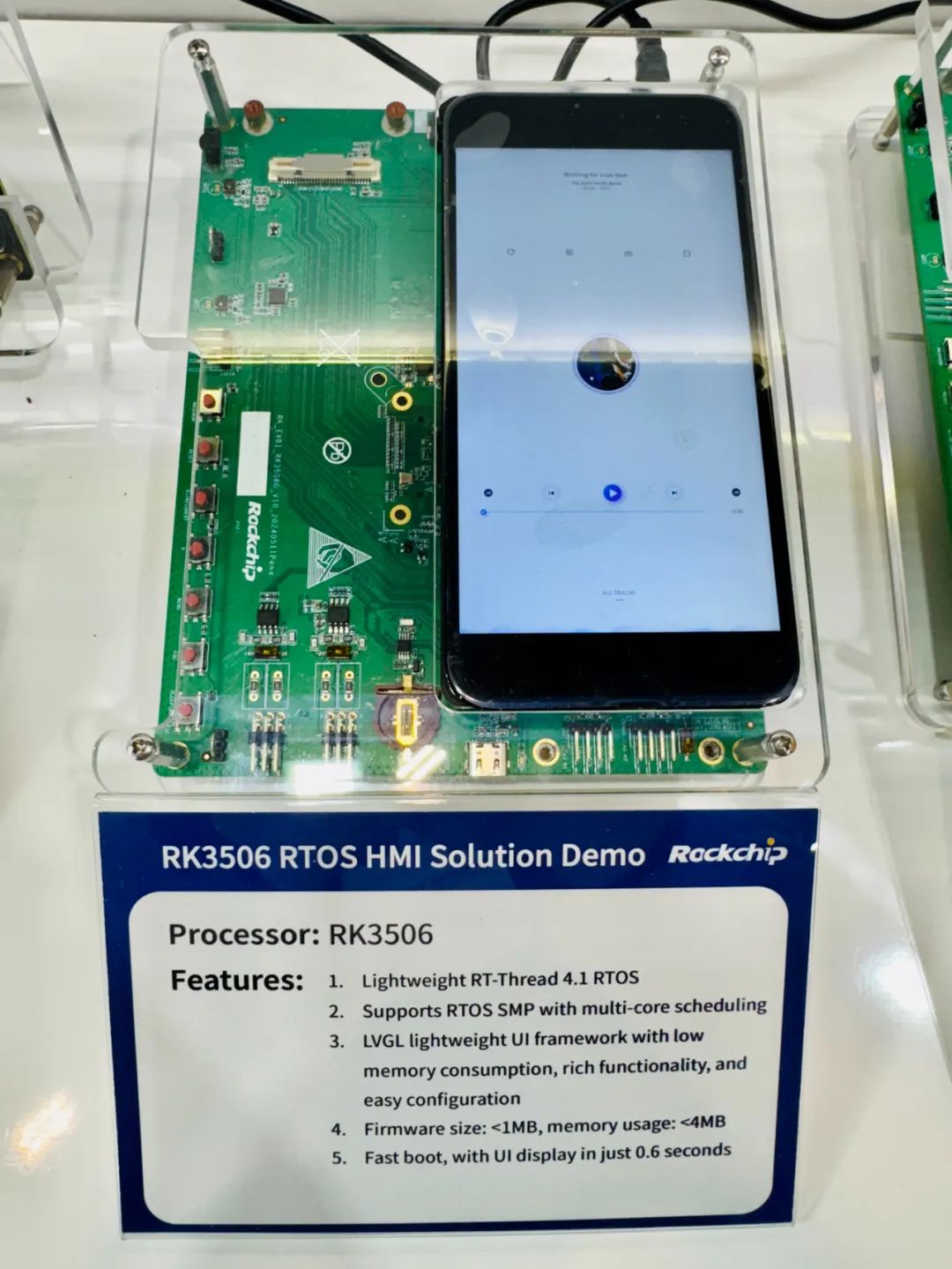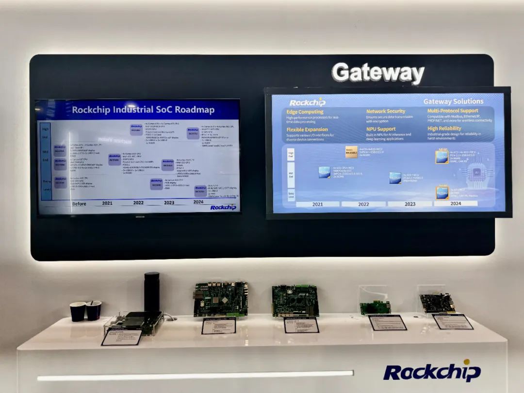 HMI展区中,展出了搭载RK3588J及RK3568J的高端HMI产品, RK3588J Web人机界面,通过浏览器对WebGL1/WebGL2提供硬件3D加速渲染,支持边缘计算及数据分析,适用于先进制造行业;RK3568J智能人机界面,采用高等级抗EMC设计,可在-20~70℃严苛环境中运行,在储能行业已广泛应用。