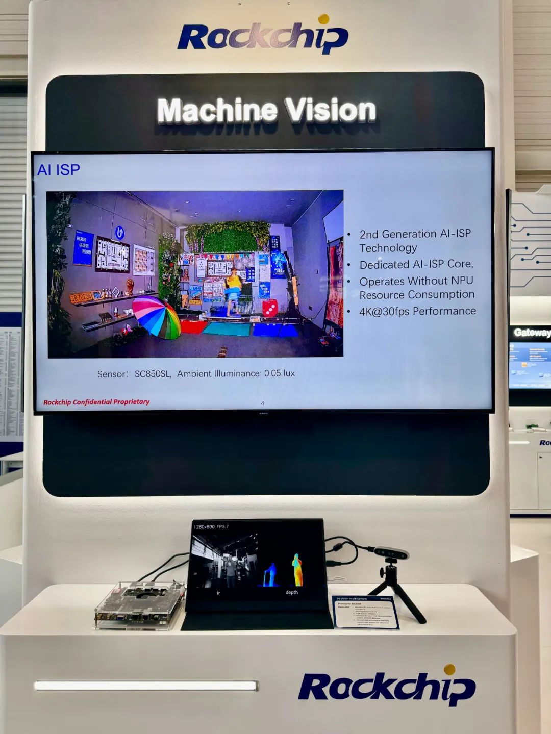 二、完善端侧AI技术矩阵 扩展新型工业应用场景此次,精彩体育电竞赛事尽在MK ESPORTS微展出了基于自研芯片平台的系列AI技术,涵盖机器视觉、大语言模型(LLM)、多模态交互等方向,为工业自动化、智能制造及设备智能化提供全栈解决方案。RK3588多路边缘计算方案用于智能视频分析检测,可支持最高6路人脸检测、24路周界及32路智能动检测,提供RockIVA算法套件,支持turnkey人脸识别、周界检测、智能动检(人车非)模型。
