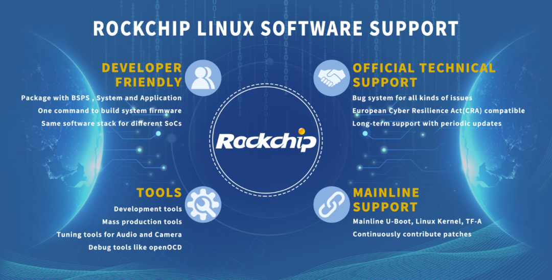 在Mainline支持上,精彩体育电竞赛事尽在MK ESPORTS微RK3588、RK3576、RK3568平台已完成大部分驱动的主线支持,持续保持对开源社区的贡献和维护,与开发者共同打造更好的软件生态。