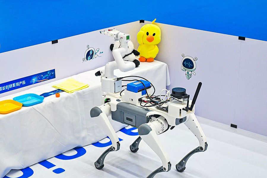 • 机器狗+机械臂轻量级服务机器人:基于RK3588运行ROS2实现机械臂与机器狗的控制,使用端侧RK1820部署的Qwen LLM与VLM进行任务的规划与编排,具备自主导航与精准操作的一体化能力,支持复杂环境下实现物体精准抓取与搬运任务,适用于巡检、安防等工业场景