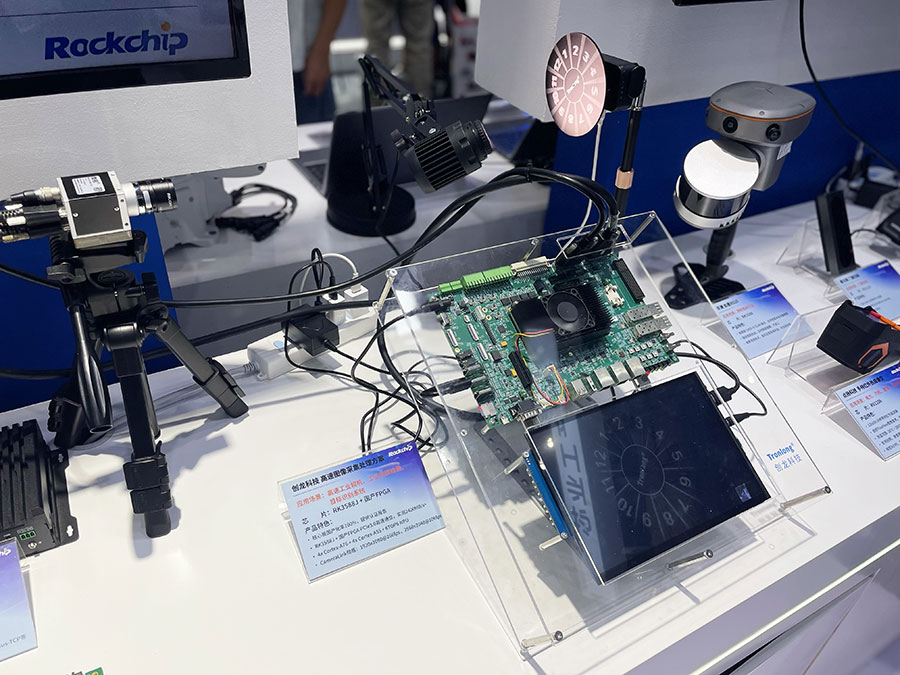 • HMI人机界面:展出入门级到高性能多款HMI方案,RK3506 RTOS轻量级HMI、支持RTOS SMP系统,多核调度,流畅运行UI显示仅耗时0.6S;RK3568J工业触控一体机,采用高等级抗EMC设计,可在-20~70℃严苛环境中运行,在储能行业已广泛应用;RK3588J高端web人机界面,支持边缘计算及数据分析,适用于先进制造行业